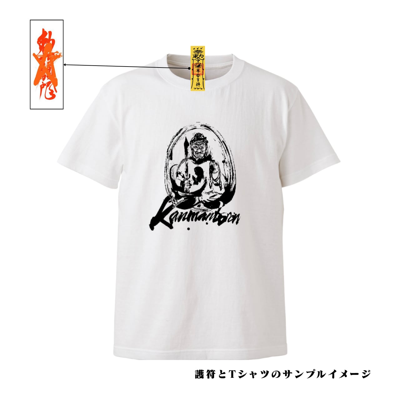 首裏の織ネームタグに本物の護符が付いている護符Tシャツ